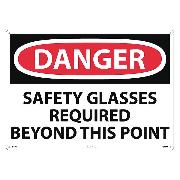 Danger Eye Protection Required Sign, 20 in Height, 28 in Width, Aluminum