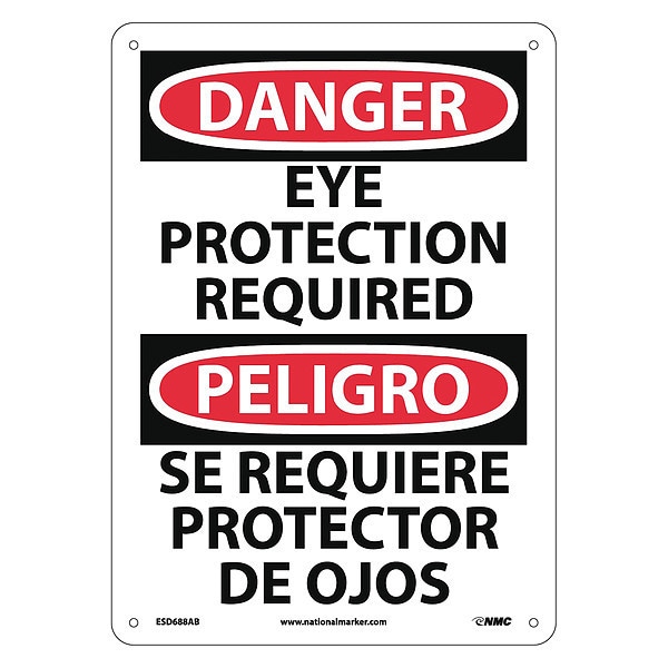 Danger Eye Protection Required Sign, Bili, 14 in Height, 10 in Width, Aluminum (Discontinued)