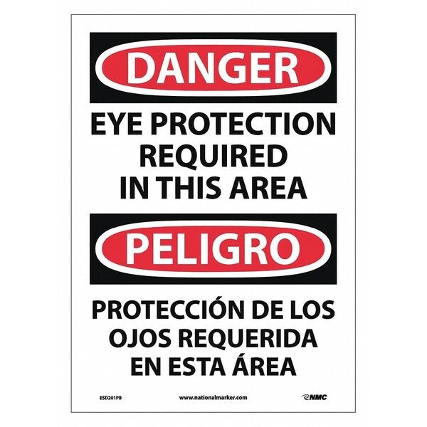 Danger Eye Protection Required Sign, Bili, 14 in Height, 10 in Width, Pressure Sensitive Vinyl (Discontinued)