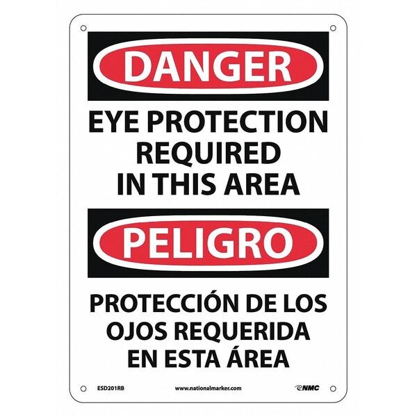 Nmc Danger Eye Protection Required Sign, Bili, 14 in Height, 10 in Width, Rigid Plastic ESD201RB