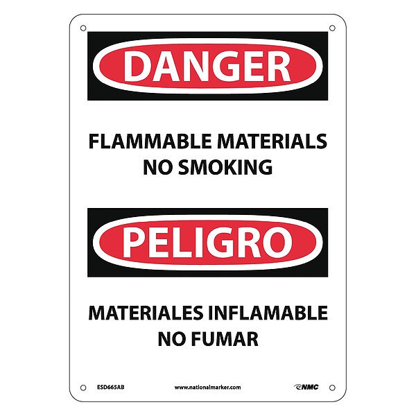 Danger Flammable Materials No Smoking Sign - Bilingual, ESD665AB
