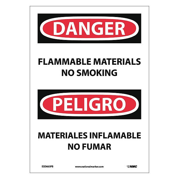 Danger Flammable Materials No Smoking Sign - Bilingual, ESD665PB