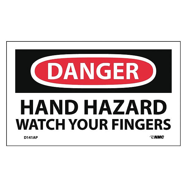 Dngr Hand Hazard Wtch Your Finger La,PK5, Package Quantity 5