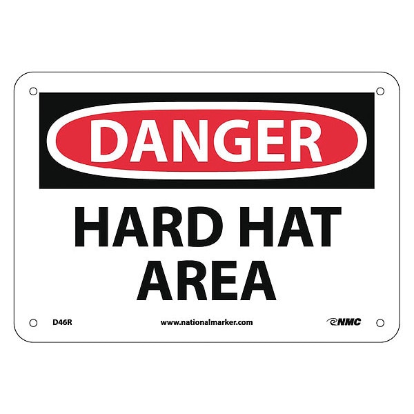 Danger Hard Hat Area Sign, 7 in Height, 10 in Width, Rigid Plastic