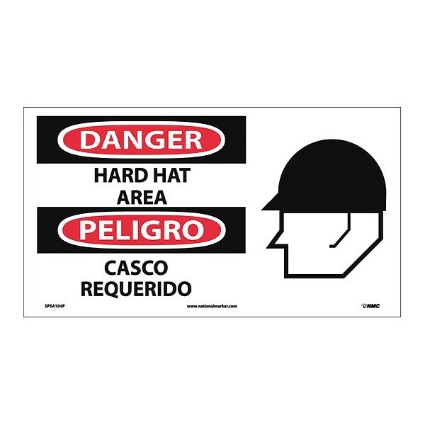 Danger Hard Hat Area Sign, Bilingual, 10 in Height, 18 in Width, Pressure Sensitive Vinyl (Discontinued)
