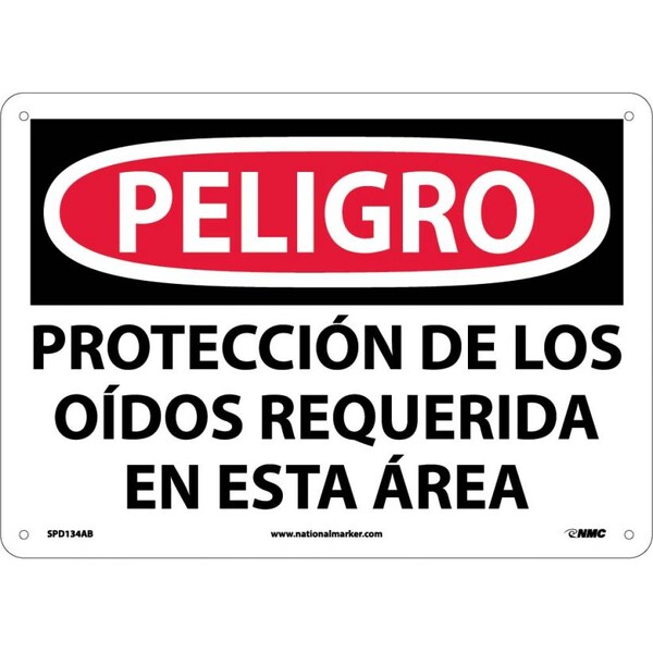 Nmc Danger Hearing Protection Required Sign, 10 in Height, 14 in Width, Aluminum SPD134AB