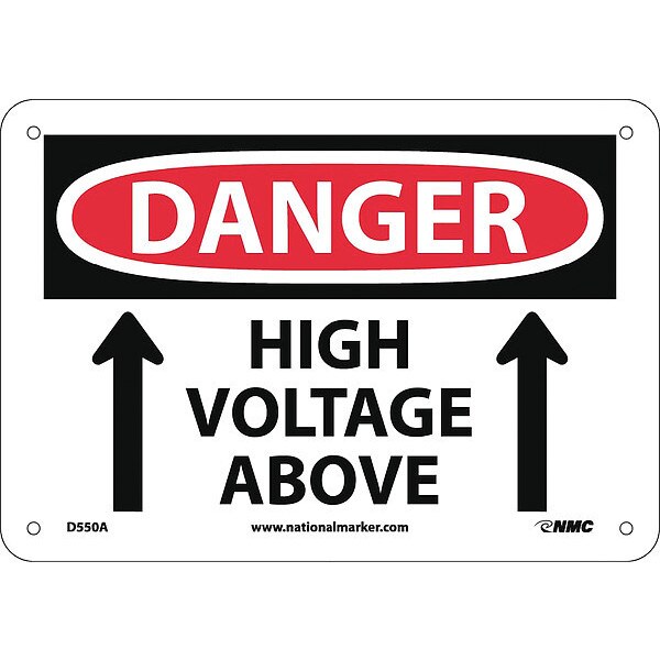 Danger High Voltage Above Sign, Bilingual, DANGER, Aluminum, 10 in Width, 7 in Height
