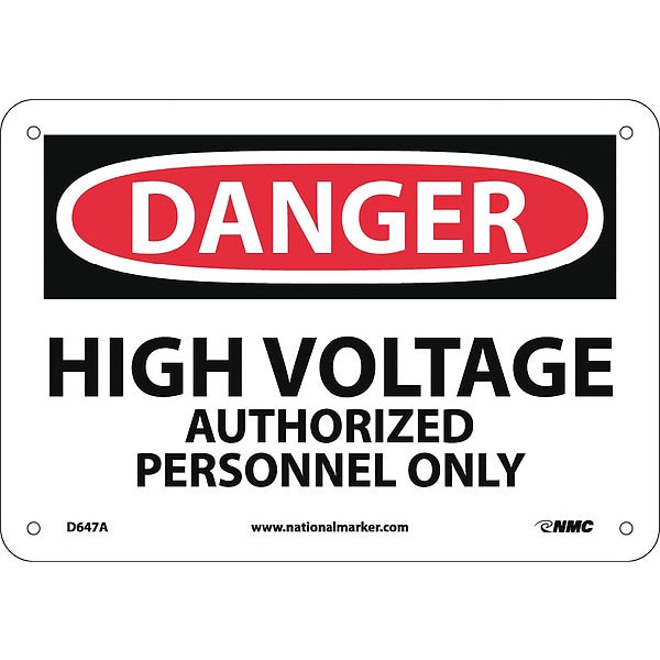 Danger High Voltage Authorized Personnel, DANGER, Aluminum, 10 in Width, 7 in Height
