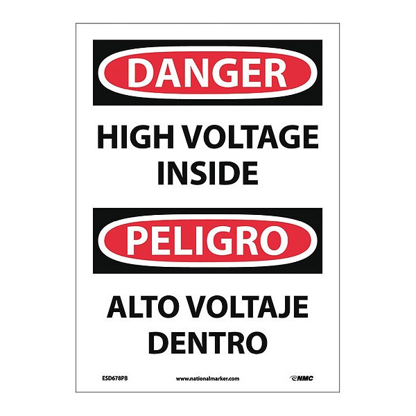 Nmc Danger High Voltage Inside Sign, Bilingu, DANGER, Pressure Sensitive Vinyl, 10 in Width ESD678PB