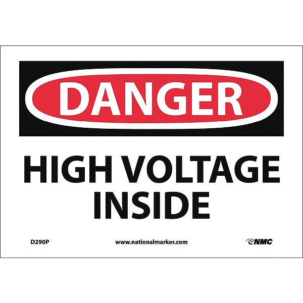 Danger High Voltage Inside Sign, DANGER, Pressure Sensitive Vinyl, 10 in Width, 7 in Height (Discontinued)