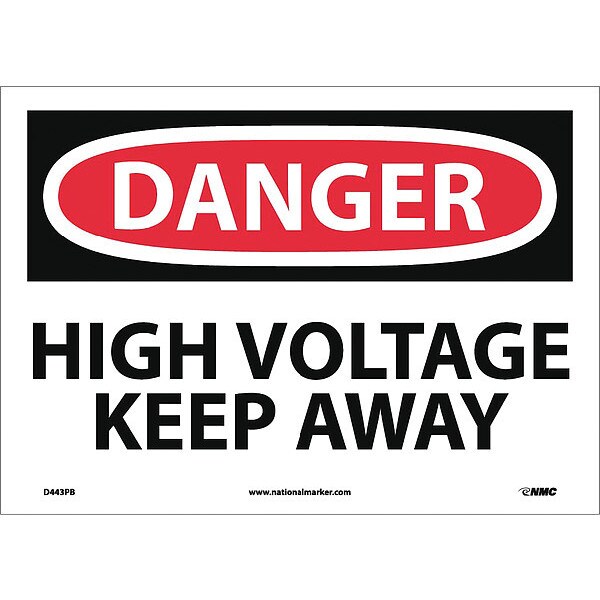 Danger High Voltage Keep Away Sign, DANGER, Pressure Sensitive Vinyl, 14 in Width, 10 in Height (Discontinued)