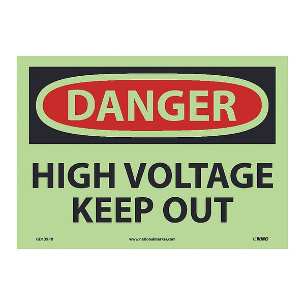 Danger High Voltage Keep Out Sign, DANGER, Glow Polyester, 14 in Width, 10 in Height