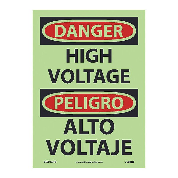 Danger High Voltage Sign - Bilingual, DANGER, Glow Polyester, 10 in Width, 14 in Height