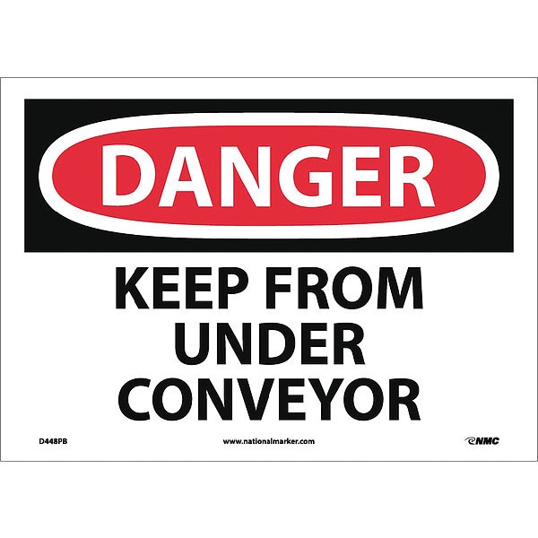 Danger Keep From Under Conveyor Sign, 10 in Height, 14 in Width, Pressure Sensitive Vinyl (Discontinued)