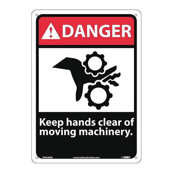 Danger Keep Hands Clear Of Moving Machin, 14 in Height, Aluminum, Rectangle, English