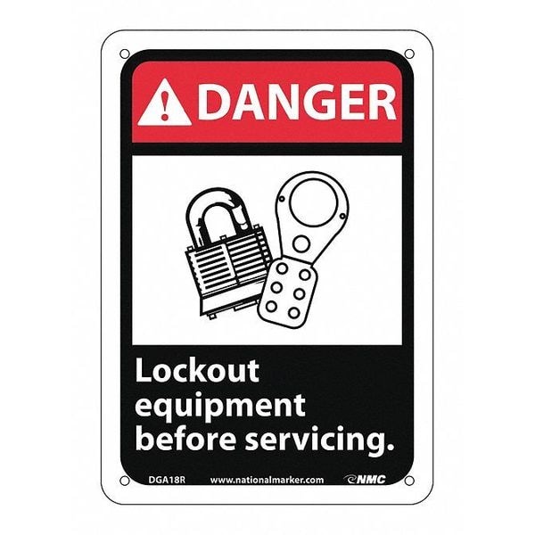 Danger Lock Out Equipment Before Servici, 10 in Height, Plastic, Rectangle, English