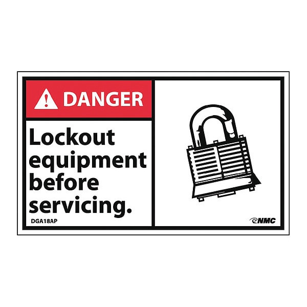 Danger Lock Out Equipment Before Servicing Label, Pk5