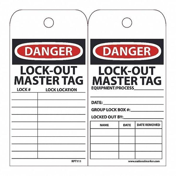 Danger Lock-Out Master Tag Lock Location Tag, Pk25