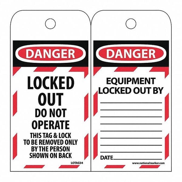 Danger Locked Out Do Not Operate Tag