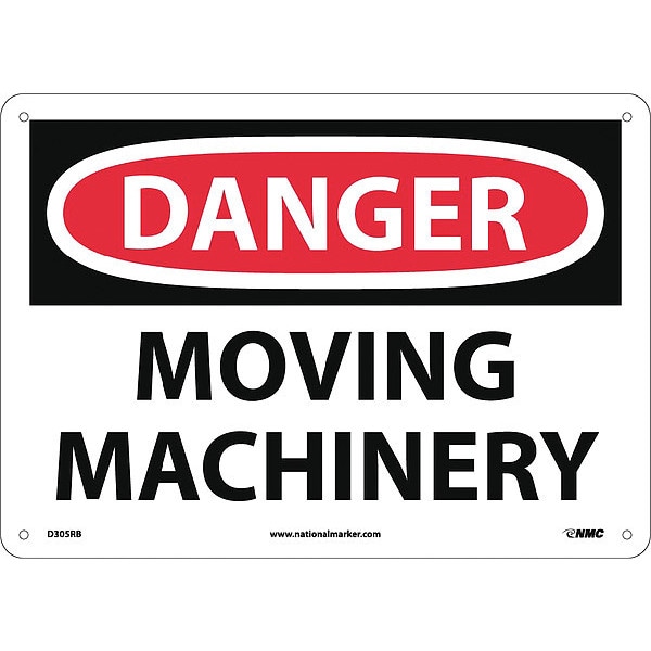 Danger Moving Machinery Sign, 10 in Height, 14 in Width, Rigid Plastic