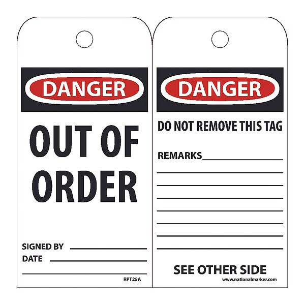 Danger Out Of Order Tag,PK25, Package Quantity 25