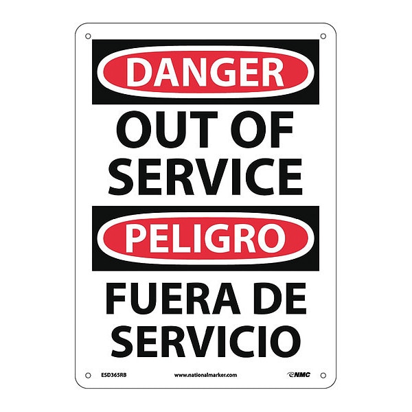 Danger Out Of Service Sign - Bilingual, ESD365RB