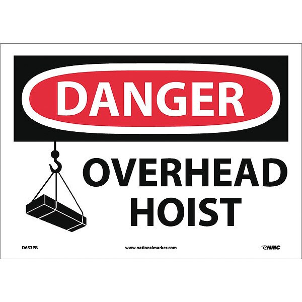 Danger Overhead Hoist Sign, 10 in Height, 14 in Width, Vinyl, Rectangle, English