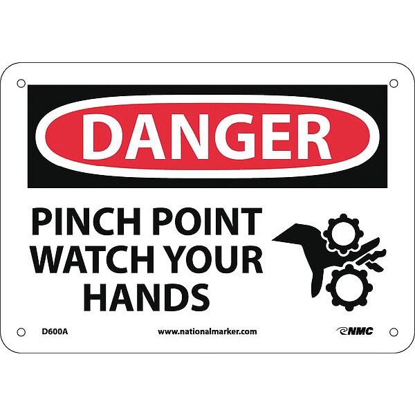 Danger Pinch Point Watch Your Hands Sign, 7 in Height, Aluminum, Rectangle, English