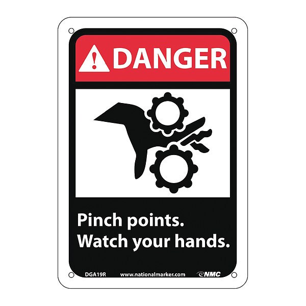 Danger Pinch Points Watch Your Hand Sign, 10 in Height, 7 in Width, Plastic, Rectangle, English
