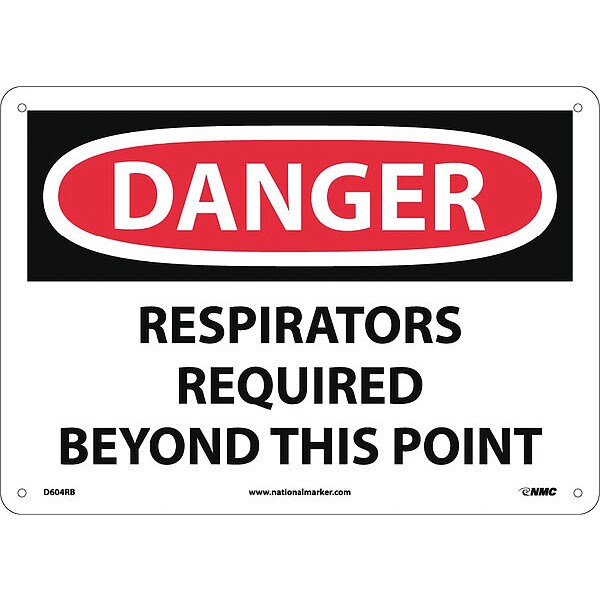 Nmc Danger Respirators Required Beyond Sign, 10 in Height, Plastic, Rectangle, English D604RB