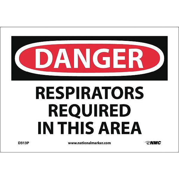 Danger Respirators Required Sign, 7 in Height, 10 in Width, Pressure Sensitive Vinyl (Discontinued)