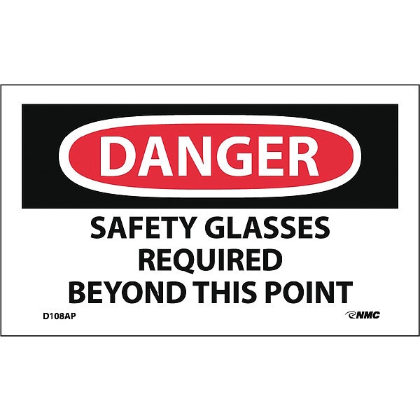 Danger Safety Glasses Required Beyond This Point Label, Pk5