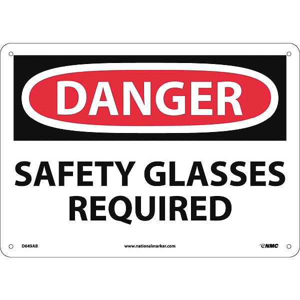 Danger Safety Glasses Required Sign, 10 in Height, 14 in Width, Aluminum