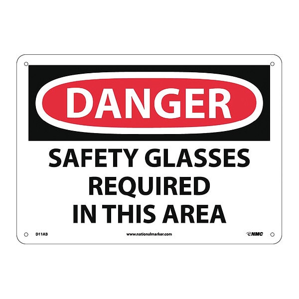 Danger Safety Glasses Required Sign, 10 in Height, Aluminum, Rectangle, English