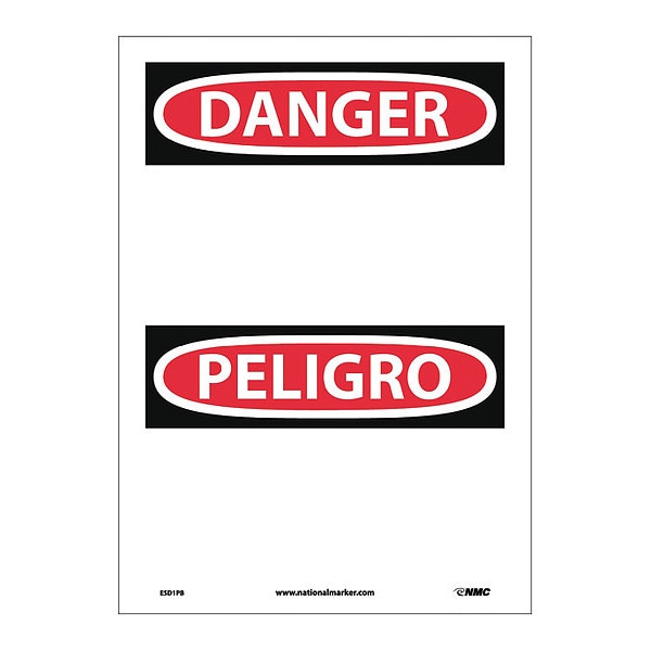 Danger Sign, 10" W, 14" H, English, Spanish, Vinyl, White