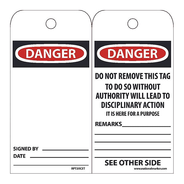 Danger Signed By Date Tag,PK25, Package Quantity 25