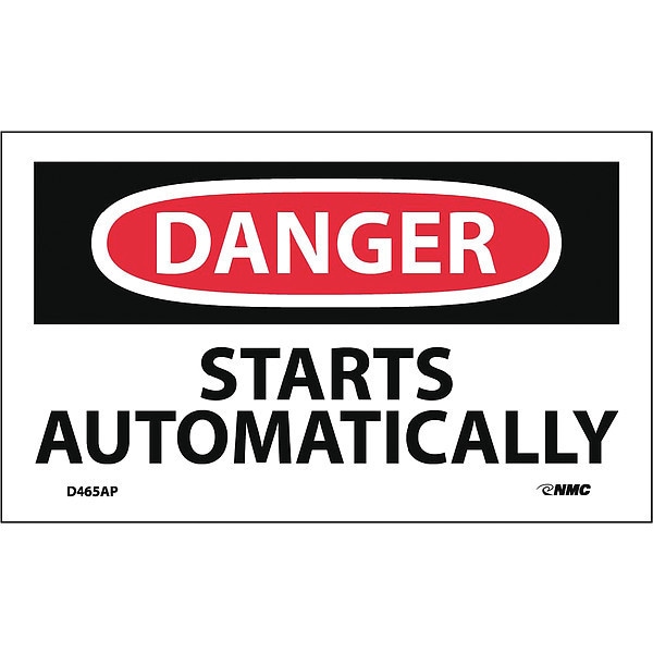Danger Starts Automatically Label, Pk5