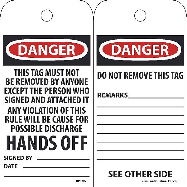 Danger This Tag Must Not Be Removed By Anyone Except Tag, Pk25 (Discontinued)