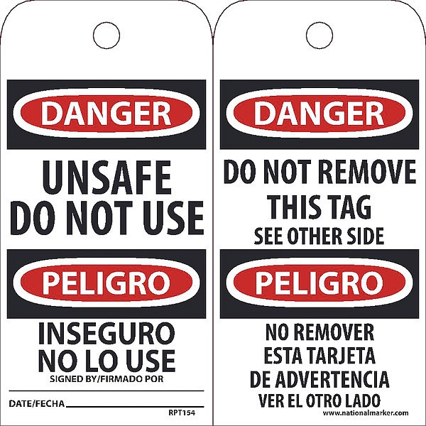 Danger Unsafe Do Not Use Tag,PK25, Package Quantity 25