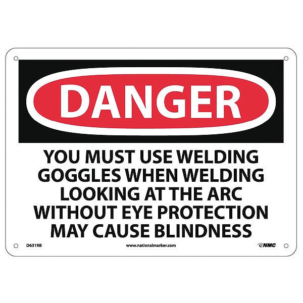 Danger Wear Ppe When Welding Sign, 10 in Height, 14 in Width, Plastic, Rectangle, English