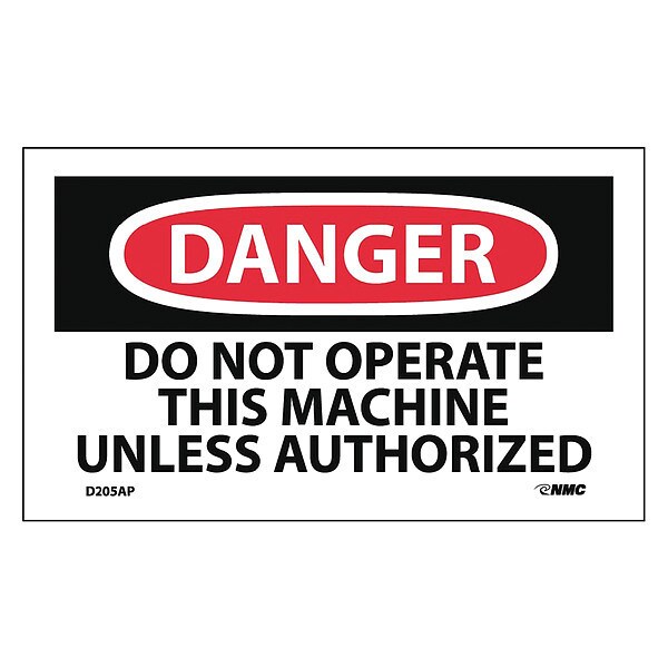 Dngr Do Not Opt This Machine Unles, PK5, 3 in Height, 5 in Width, Pressure Sensitive Vinyl