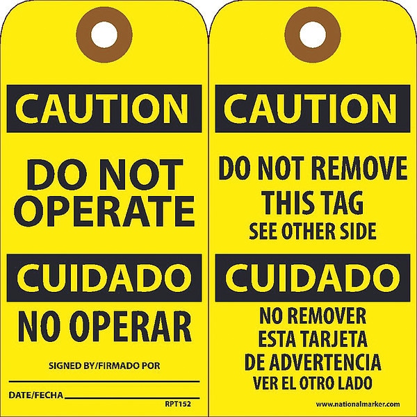 Do Not Operate Bilingual Tag,PK25, Package Quantity 25
