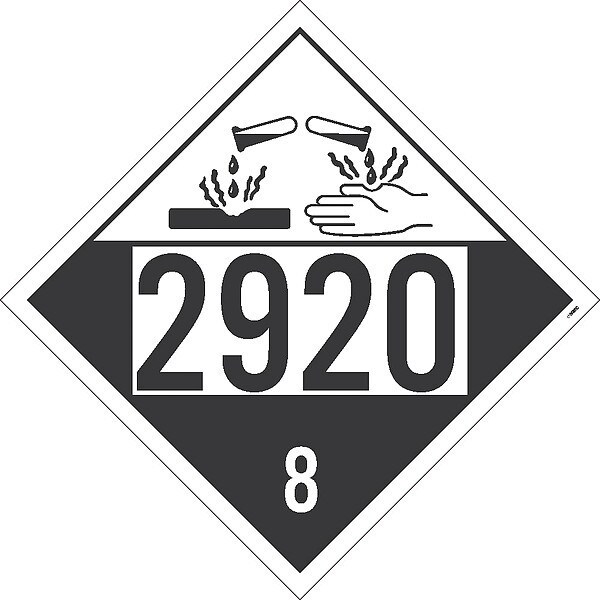 Dot Placard Sign, 2920 8 Corrosive, Material: Pressure Sensitive Removable Vinyl .0045 (Discontinued)