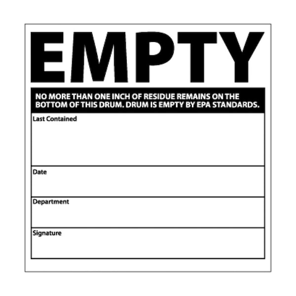 Empty No More Than One Inch Of Residue Remains On The Bottom Of This Drum. Drum Is Empty By Epa Standards. Last Contained ____