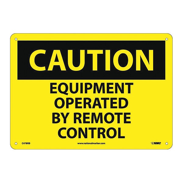 Nmc Equipment Operatd By Remote Control Sign, 10 in Height, 14 in Width, Rigid Plastic C478RB