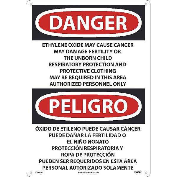 Danger Peligro Ethylene Oxide May Cause Cancer May Damage Fertility Or The Unborn Child Respiratory . . . Area Authorized Personnel Only (bilingual)