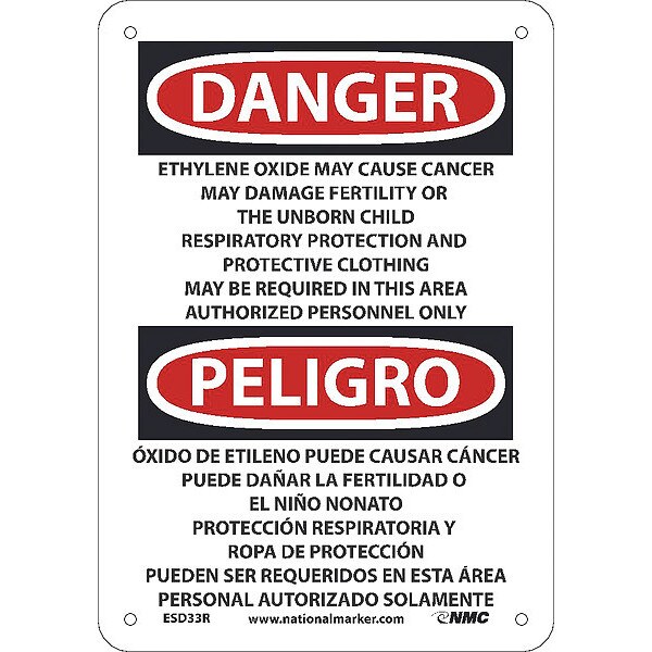 Danger Peligro Ethylene Oxide May Cause Cancer May Damage Fertility Or The Unborn Child Respiratory . . . Area Authorized Personnel Only (bilingual)