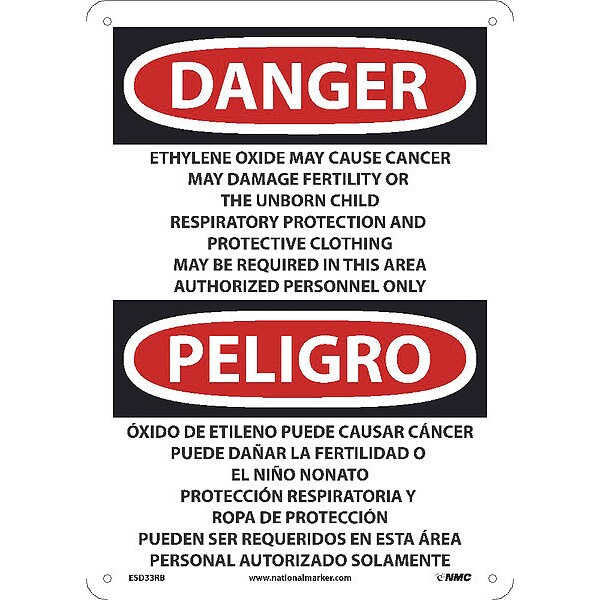 Danger Peligro Ethylene Oxide May Cause Cancer May Damage Fertility Or The Unborn Child Respiratory . . . Area Authorized Personnel Only (bilingual)