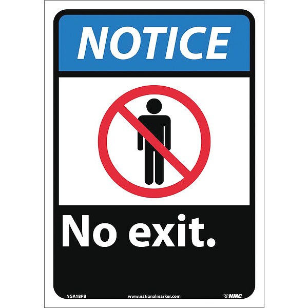 Nmc Exit Sign, Pressure Sensitive Vinyl, 10 in W, 14 in H, NO EXIT NGA18PB