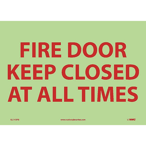 Fire Door Keep Closed At All Times Sign, 10 in Height, 14 in Width, Glow Polyester